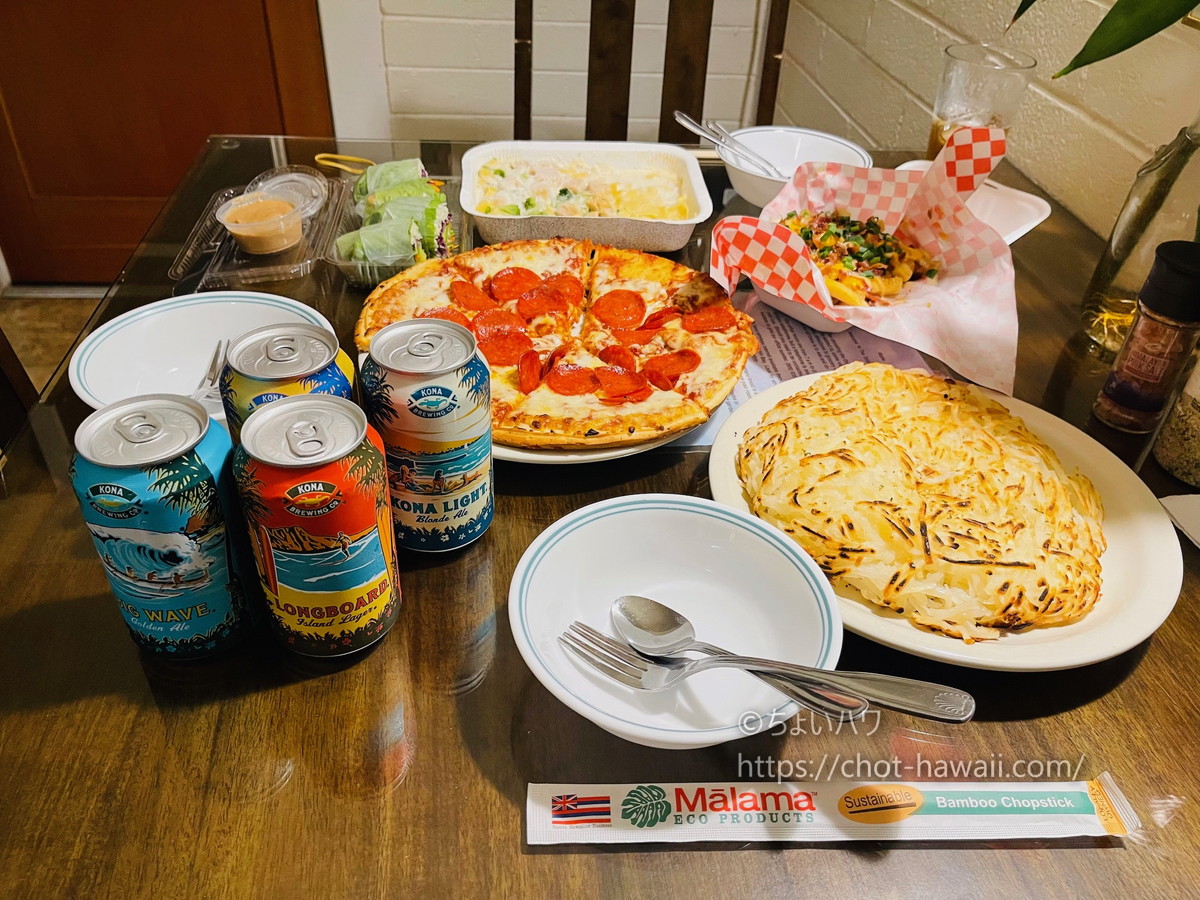 今回はフルキッチン付の部屋を借りたので、KTAスーパーストアとナイトフェスで買ったものを中心に、お部屋でディナーにしました。