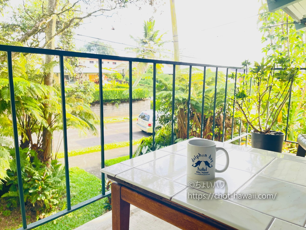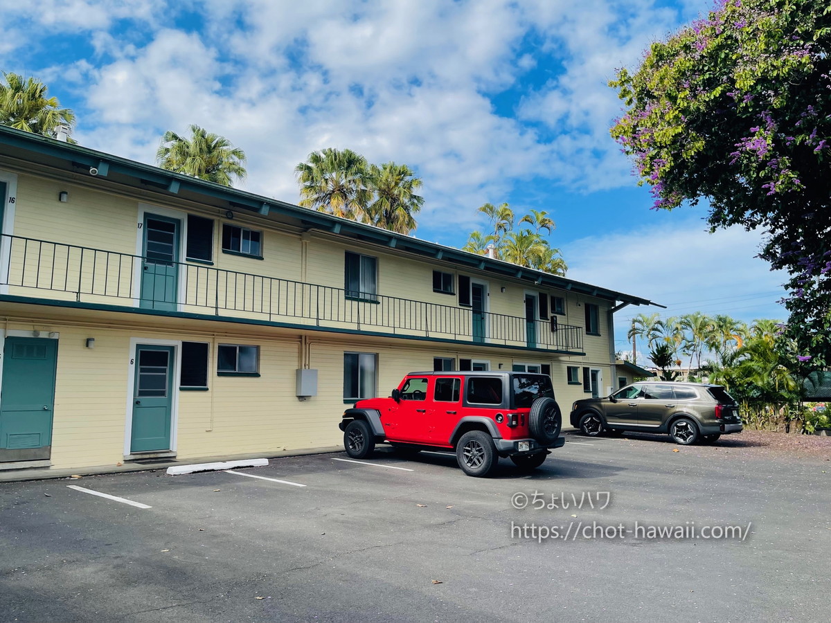 ヒロのダウンタウン近くにある「ドルフィンベイホテル」に到着しました。