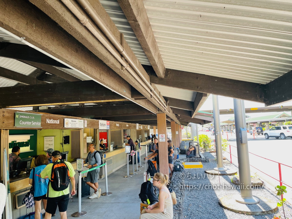 レンタカーで移動する人がほとんどなので、受付カウンターで5名ほどの行列に並びました。