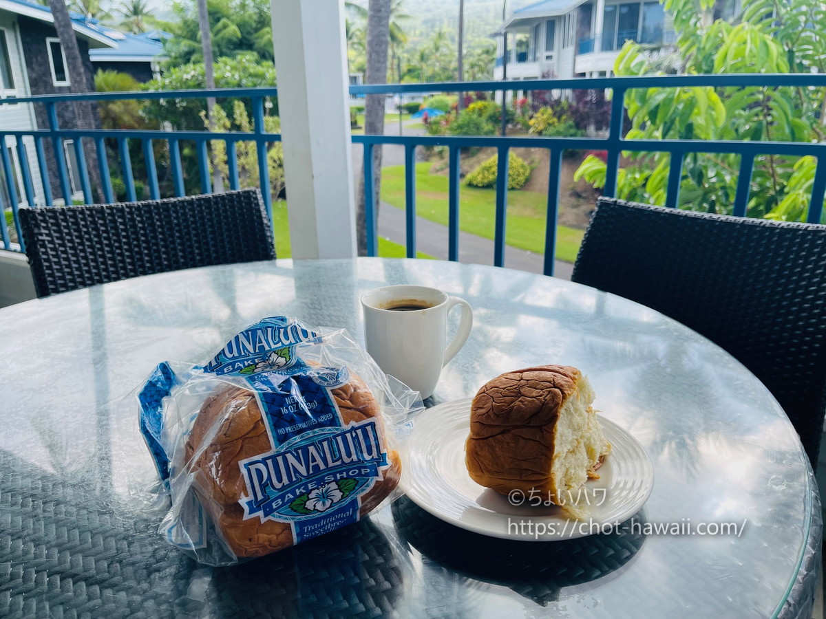 「プナルウ・ベイクショップ」のパンとコーヒー。