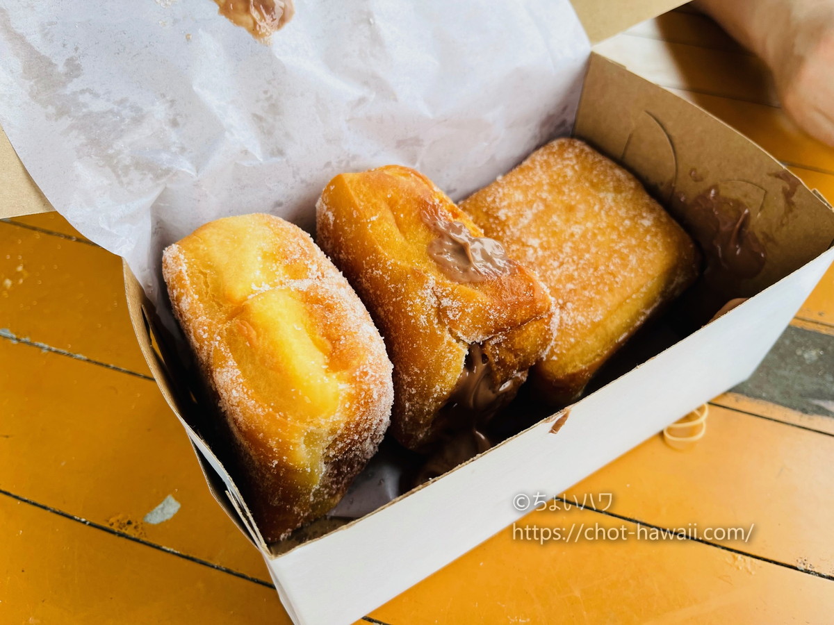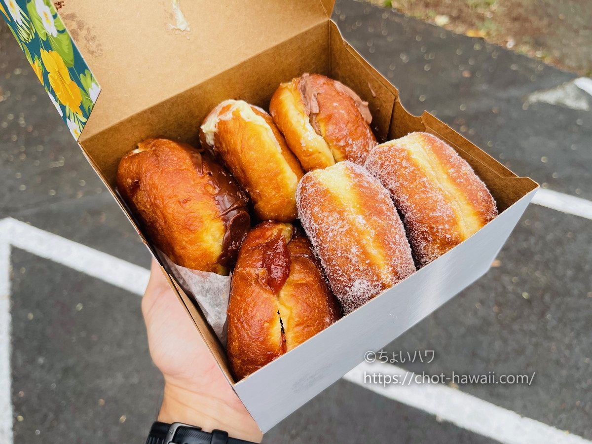 10名くらいの行列の中で、人気のマラサダを一通りGETしました!