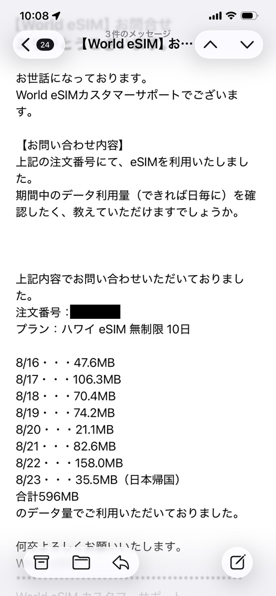 ちなみに、2019年のハワイ旅行時のレンタルWi-Fiの「データ消費量」は以下でした。