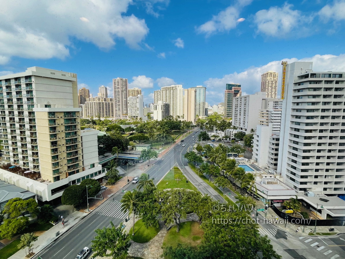 ワイキキビーチに出るには少し離れていますが(といっても、徒歩15~20分くらい)、他エリアと比べて「リーズナブルなホテル」が多いエリアです。