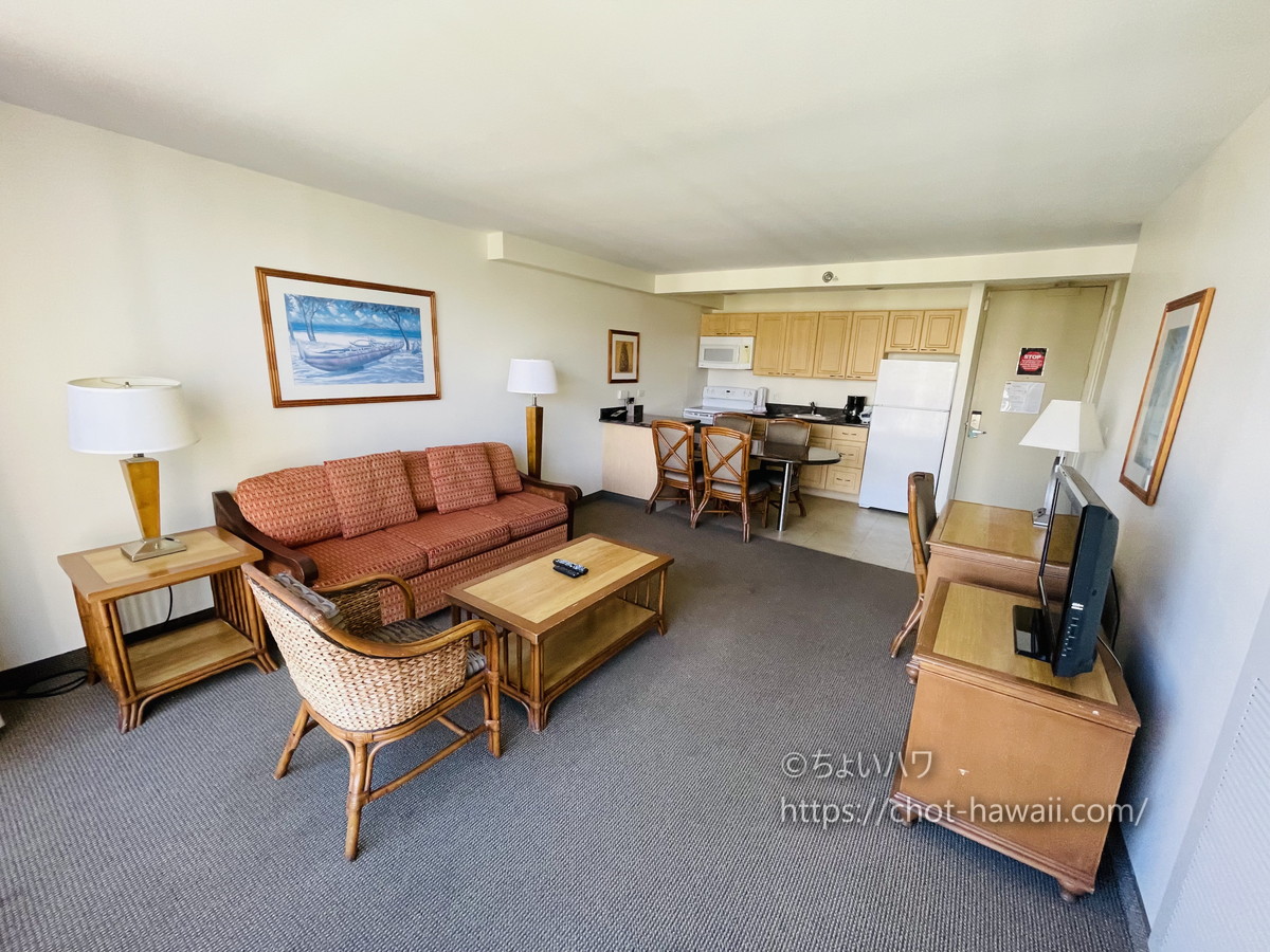 ワイキキ内のラウンジは「インターナショナルマーケットプレイス内」にあり、無料ドリンクやマッサージマシンで、移動中のちょっとした休憩に重宝します。