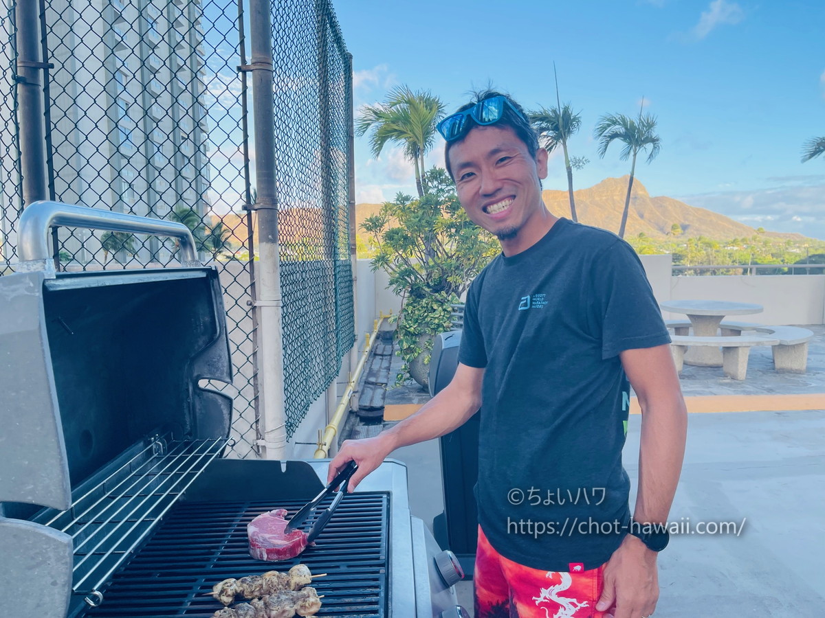 無料で自由に使えるバーベキューグリルも併設されているので、徒歩圏内の「ワイキキマーケット」でお肉を買い、ダイヤモンドヘッドを見ながらのBBQディナーもできます!