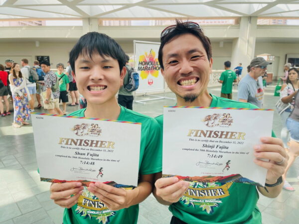 ホノルルマラソン2022の完走証受け取りシーン