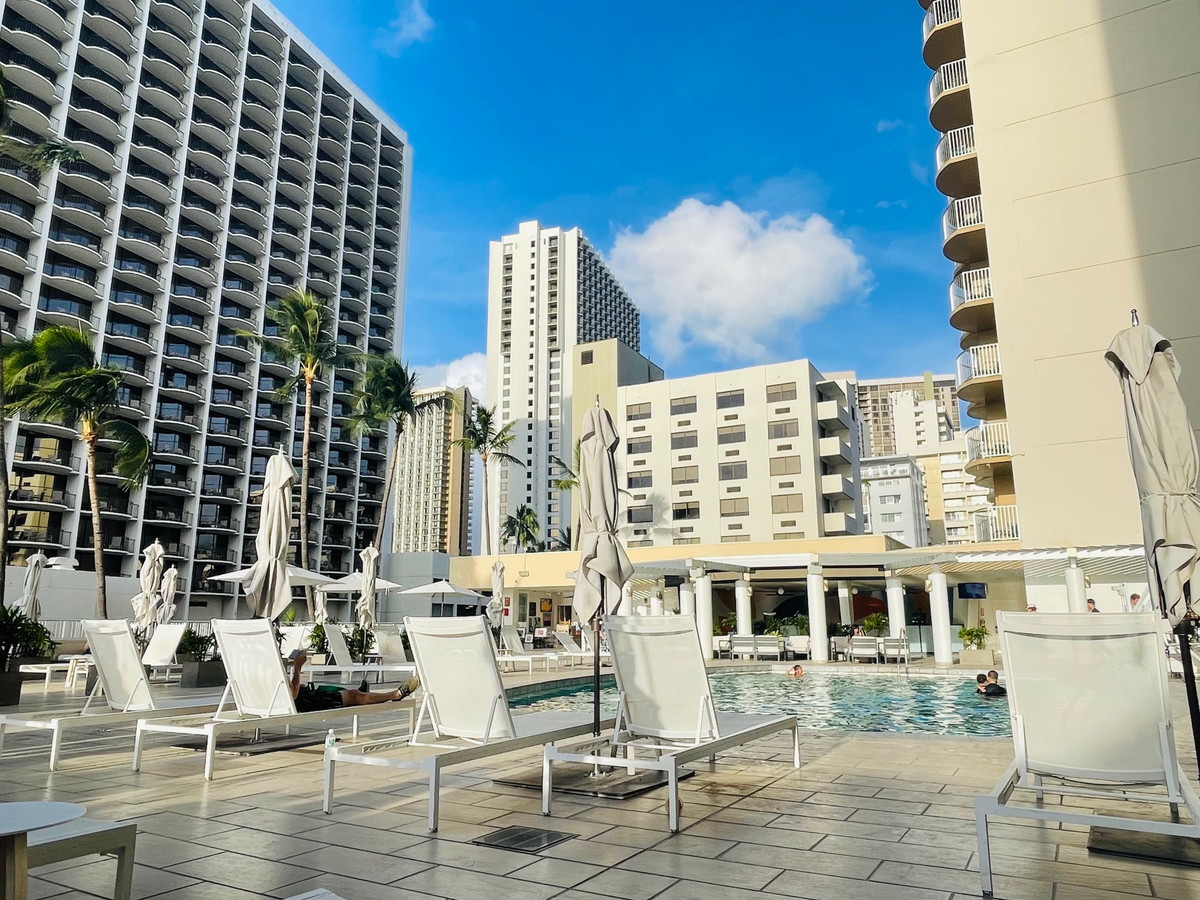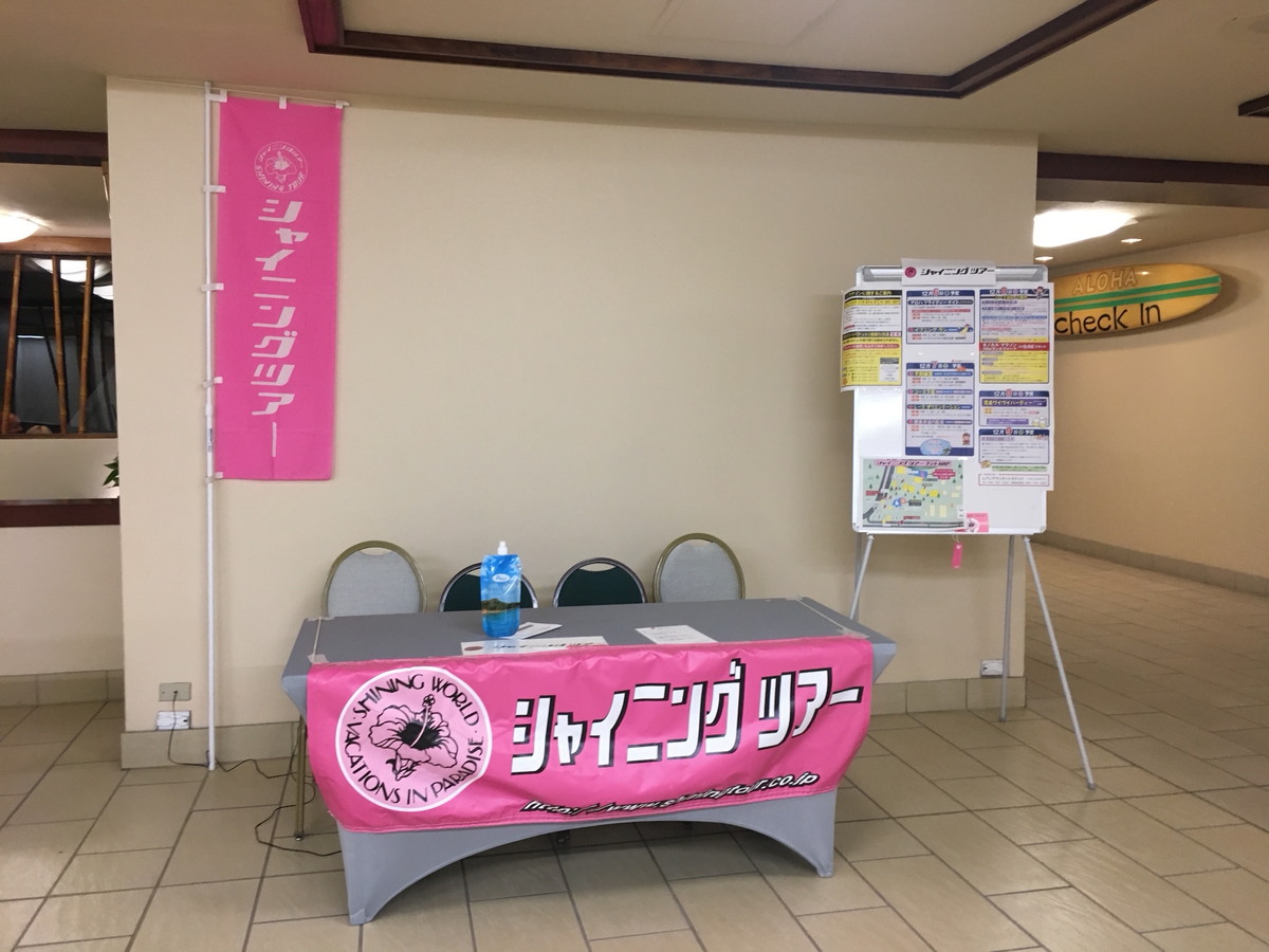 メイン拠点は「ツインフィンホテル」(旧:アストンワイキキビーチホテル)です(ツアーデスクもココに設けられます)