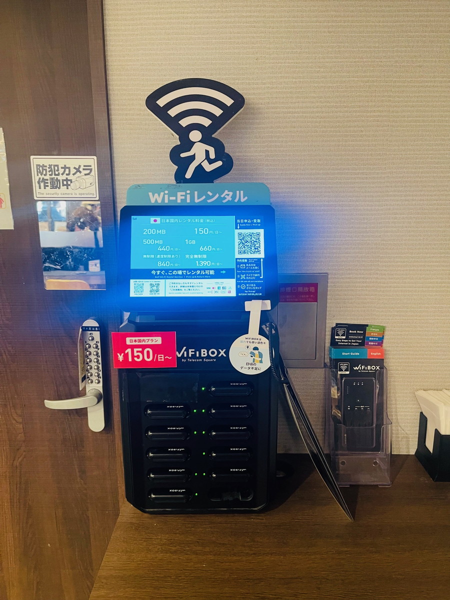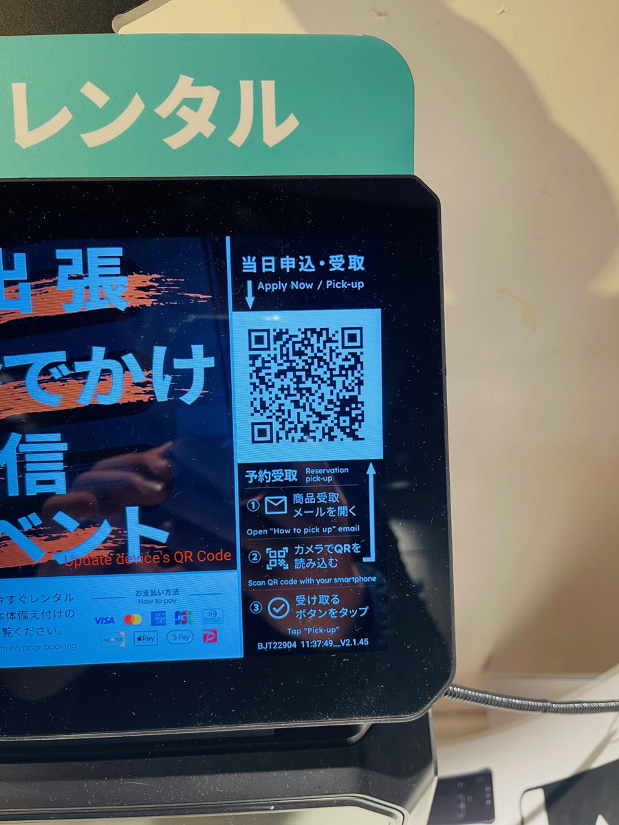 全国各地のスロットは「Wi-Fiレンタル」と書かれた専用の端末が目印なので、初めてでも迷わず見つけられますよ。